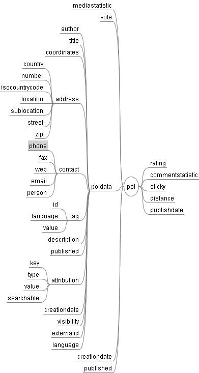 | api | Enthält alle relevanten poi Erweiterungsdaten. Alle Eigenschaften enthalten plain text, kein HTML | Lesen/Schreiben möglich, wenn der User Eigentümer des Contents ist. |